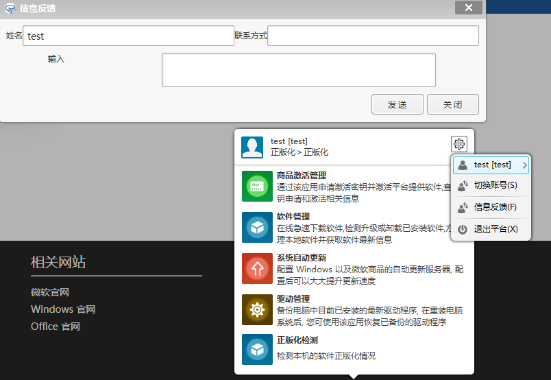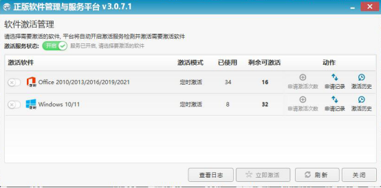 2) 登录成功后,软件自动弹出商品激活管理窗口(Windows和Office默认各分配10次激活次数)
