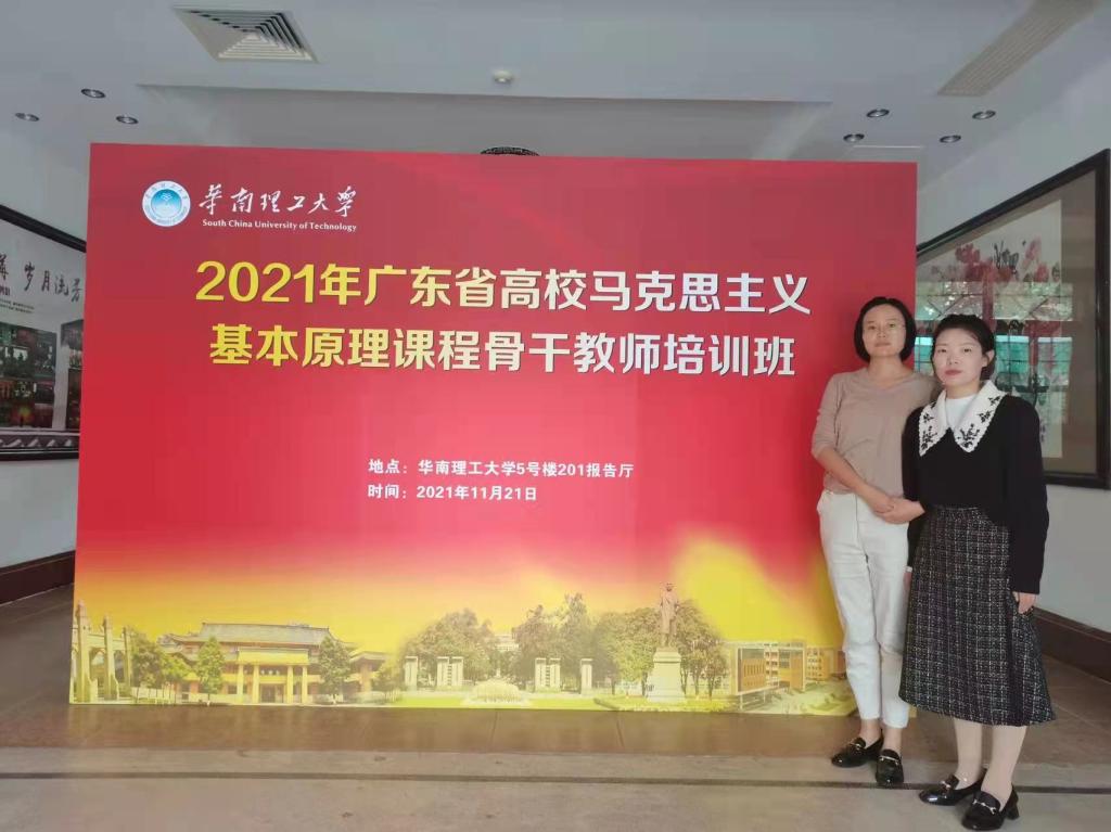 【本网讯】11月21日,由广东省教育厅和广东省高校思政课区域协同创新中心主办、华南理工大学马克思主义学院承办的2021年度广东省高校马克思主义基本原理课程骨干教师培训在华南理工大学举行。为进一步提升ky开元思想政治理论课教师的专业素养与综合素质,积极践行学校“德学”教育思想和“五进”教育实践活动,马克思主义学院选派马克思主义基本原理教研室主任杨丽丽和马丽洁两位青年教师代表参加了此次培训。
