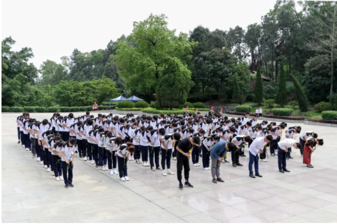来到烈士陵园,学生代表首先献上花圈,在烈士墓前全体人员怀着崇敬的心情,向为国捐躯的革命先烈行三鞠躬礼,表达对先烈的无限敬意。