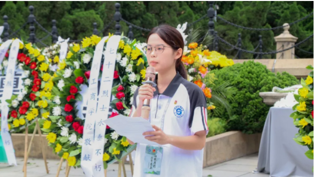 学生代表许思怡上台进行发言,忆往昔,诉不尽对先烈的无限怀念过去,革命先烈用枪炮、用弹药让中国站起来;今天,我们要用我们的知识,用科学,用我们不服输的意志,为振兴中华而勤奋学习,为创造祖国辉煌贡献出自己的力量。学生代表雷浩欣同学向革命先烈致辞,雷同学认为作为一名学生,我们要时刻铭记革命先烈作出的贡献,继承先烈的坚韧品质,发扬无畏精神。积极践行“德学”思想和“五进”活动,珍惜如今来之不易的幸福生活,好好学习,为祖国新时代建设贡献自己的一份力量。