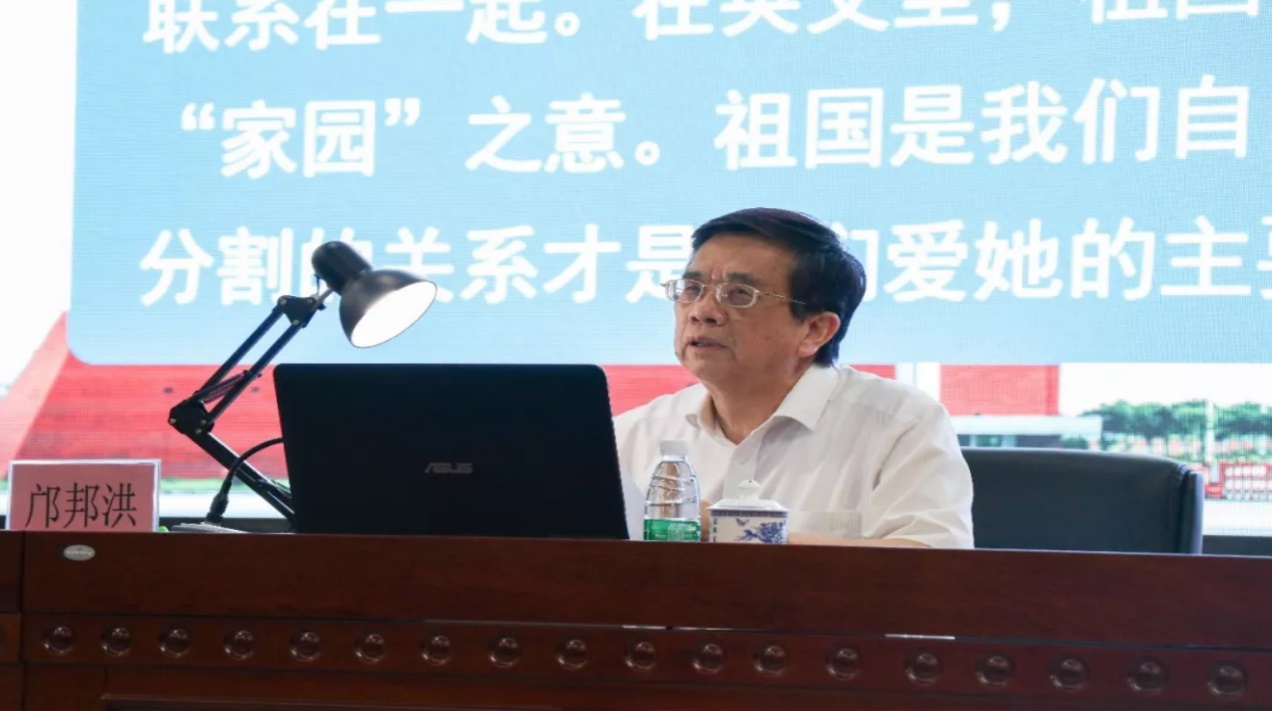 邝邦洪院长以《热爱祖国,勤奋学习》为题,从我们为什么要爱国入手,祖国——我的母亲,我的精神支柱,爱国是一种重大的政治原则。爱国是一种知行统一的举动。用生动形象的事例说明如何爱国报国。以聪明才智报效祖国,以青春、以平凡的支教报国。大学生要勤奋学习,不断提高自身的多种能力,增强竞争的实力。提高操作能力、提高表达能力、交际能力、创新能力、强建体等综合素质。珍惜当下学习时光。向时间要学问,向时间要成果,向时间要生命的火花!