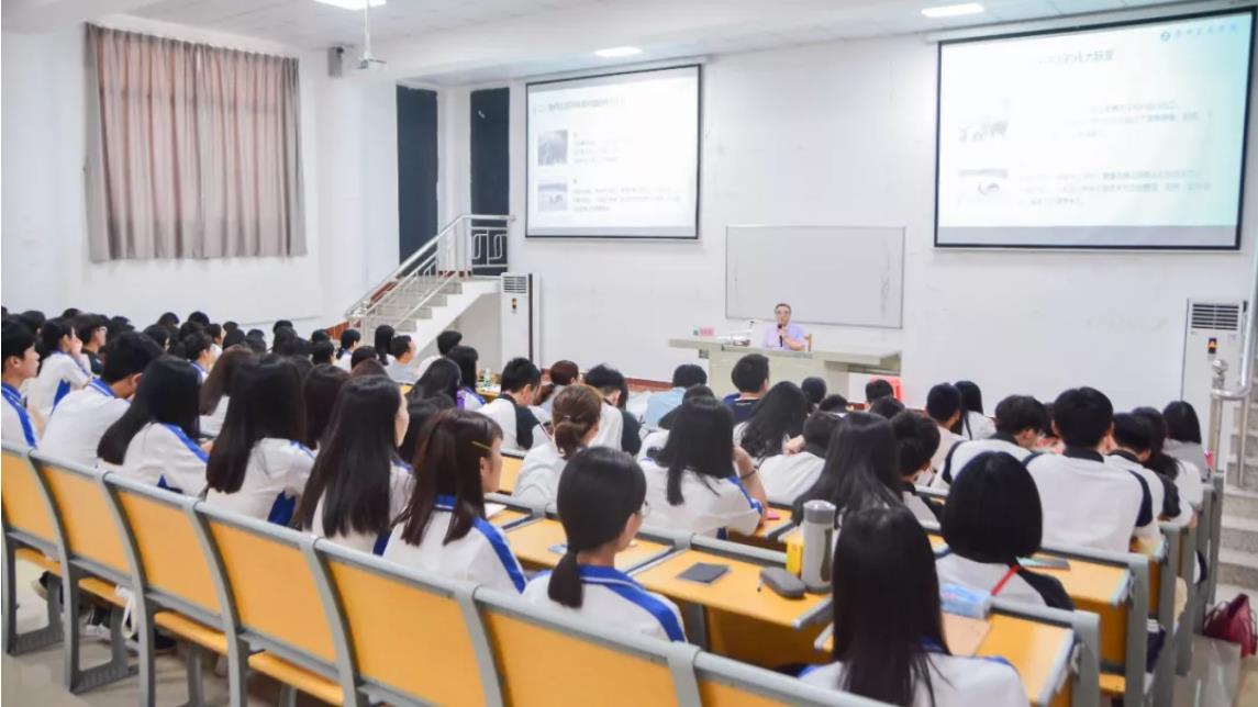 讲到爱国报国,邝院长还带领全体师生深情的唱起了《我和我的祖国》,全场气氛热烈,爱国之情油然而生。邝院长与师生分享自己的人生体会和感悟、联系学生的实际、引经据典,其内容朴实、深入浅出的授课风格赢得了同学们的阵阵掌声。