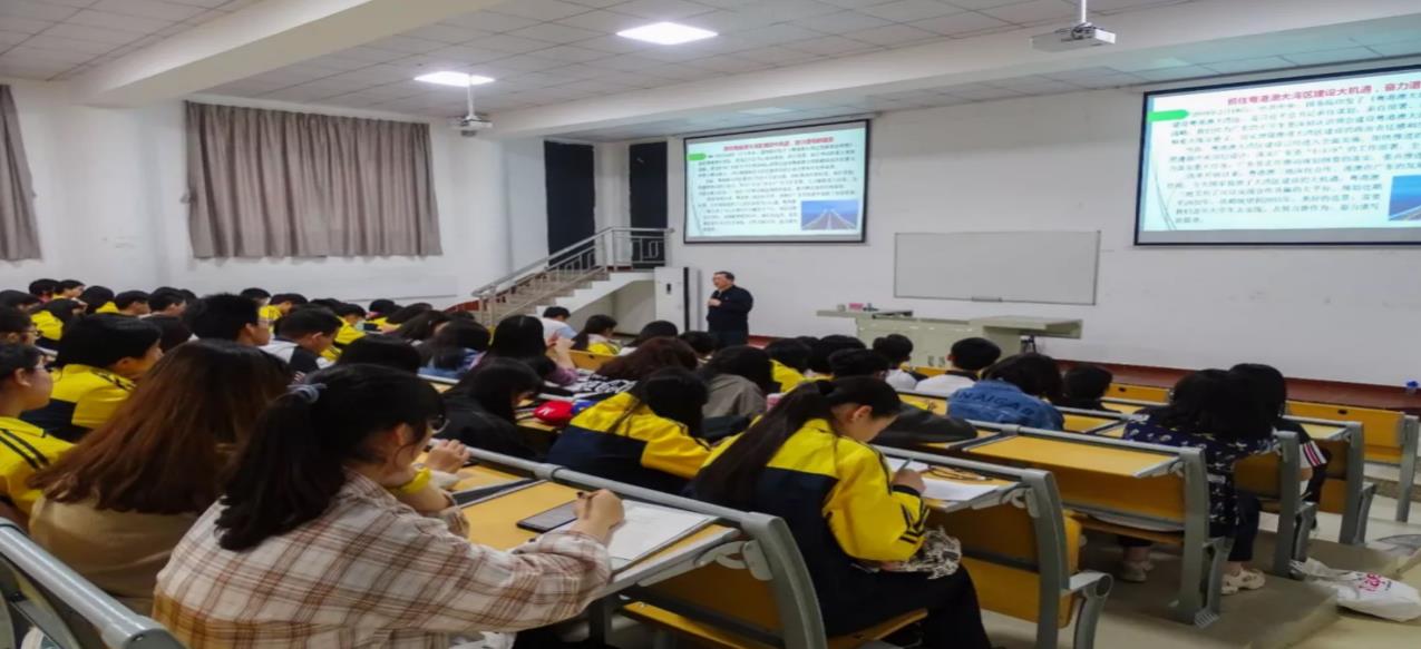 钟书记以《坚定理想信念 学习新思想 拥抱新时代 勇于新担当 努力新作为 书写新华章》,以解读“中国梦”的核心目标为开场,要求大学生要坚定共产主义信念,牢固树立“四个意识”、自觉增强“四个自信”、坚决做到“两个维护”,为实现中华民族伟大复兴、实现共产主义而奋斗。钟书记还结合粤港澳大湾区建设,对同学们提出更具体的要求:作为广东的大学生要深刻认识领会建设粤港澳大湾区的深远历史意义和重大现实意义,切实增强推进大湾区建设的政治责任感和历史使命感。同学们认真聆听,并作出自己的思考。