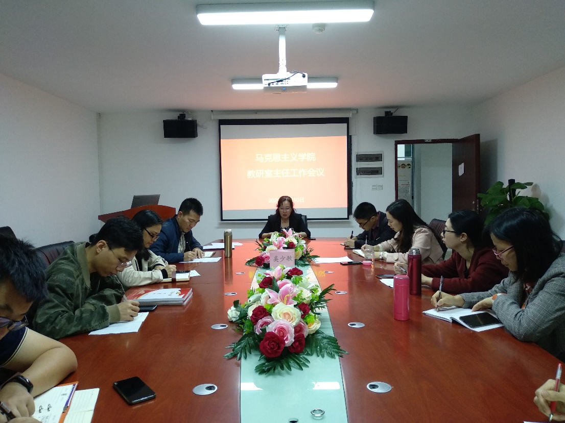 张辉院长还对期末工作进行了部署,她指出寒假临近,期末的各项收尾工作要依照本科教学工作要求保质保量完成;假期要完成“概论”课题库建设及“原理”课题库完善工作;准备参加年底的全省思政课新任教师基本功比赛的老师,要在假期做好充分的准备;做好下学期的备课工作,特别是新入职的老师,教研室主任要做好指导等。