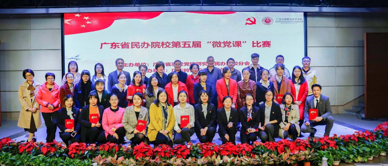 广东省民办院校第五届“微党课”比赛评委与参赛选手合影