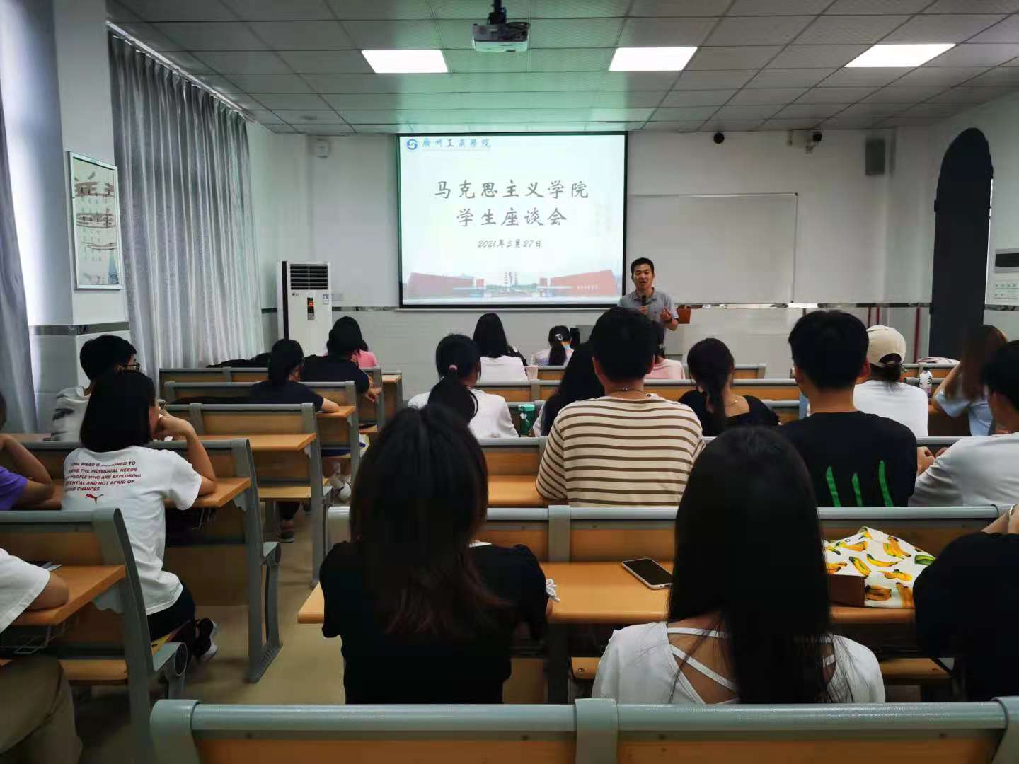 为贯彻落实ky开元邝邦洪校长所提倡的“以德为行 以学为上”的教育思想,深入了解本学期思想政治理论课开设情况,听取学生对思想政治理论课的意见及建议,进一步加强和改进教学,5月27日,马克思主义学院在花都校区教学楼504召开了2020-2021学年度第二学期花都校区学生座谈会。马克思主义学院卢剑锋老师、郝建丽老师及40多名学生代表参加了此次座谈会。