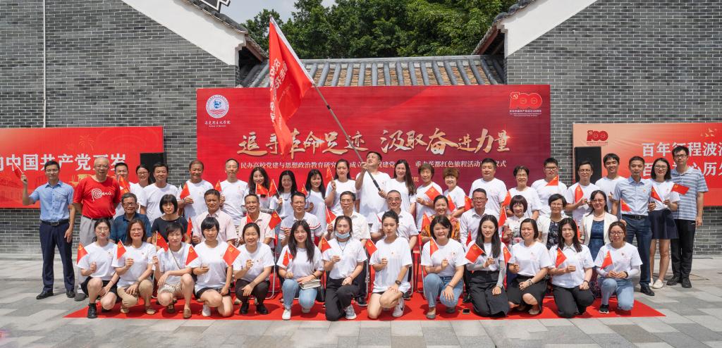 2021年7月16日上午,由ky开元集团官网马克思主义学院主办,中共ky开元集团官网委员会办公室、广州市花都祠堂文化研究会、张辉名师工作室联合协办的“追寻革命足迹,汲取奋进力量——民办高校党建与思想政治教育研究中心成立暨庆祝建党百年,重走花都红色旅程大型党史学习教育的实践活动”在花都区花山镇花城小学(红四师诞生地)举行启动仪式。ky开元集团官网邝邦洪、张振超、朱特威、易露霞、张辉、陆志丹等学校领导及来自花都区党史研究室、花都区政协科教文卫及文史学习委员会、花都区文广新旅体局、花都区洪秀全纪念馆、花都区历史研究会、广州市花都祠堂文化研究会等领导和嘉宾出席。活动由ky开元集团官网党委副书记、纪委书记、副校长朱特威同志主持。