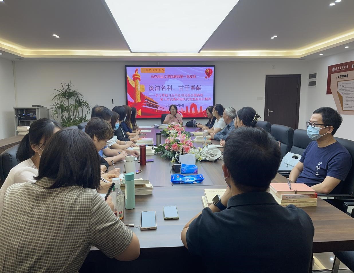 【本网讯】为贯彻落实教育部《关于学习贯彻习近平总书记给全国高校黄大年式教师团队代表重要回信精神的通知》,10月9日下午,马克思主义学院教师第一党支部在张辉名师工作室召开“学习贯彻习近平总书记给全国高校黄大年式教师团队代表重要回信精神”专题会议。会议由党支部书记唐晓燕副教授主持,党支部全体党员参加。