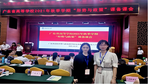 【本网讯】2021年10月10日,由广东省教育厅主办、华南师范大学马克思主义学院承办的广东高校2021年秋季学期“形势与政策”课备课会在广州东山宾馆召开。为进一步提升ky开元马克思主义学院青年教师的教研水平,有效提高教学质量,积极践行学校“德学”教育思想和“五进”教育实践活动,马院选派形势与政策教研室主任方圆妹和李雨两位青年教师代表参加了此次备课会。