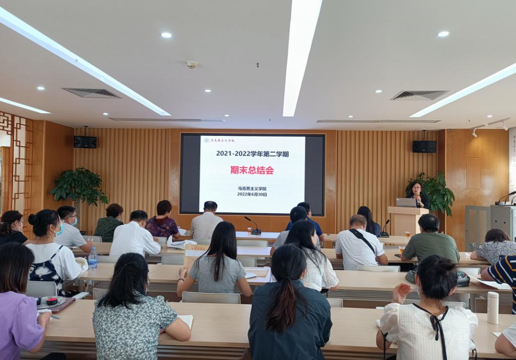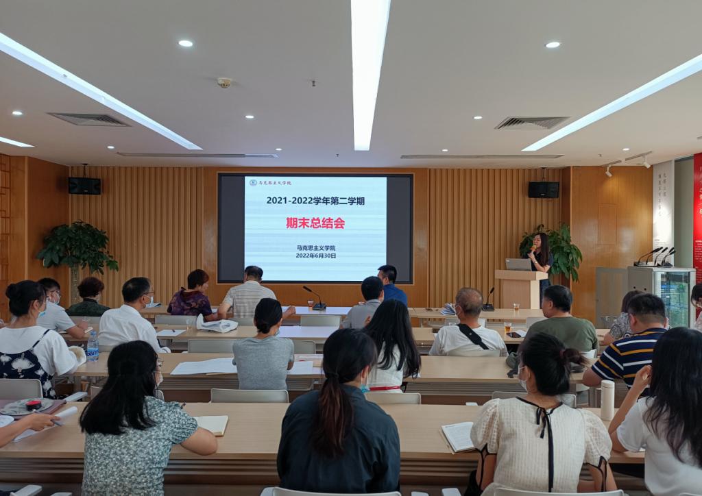 【本网讯】为全面总结马院本学期的工作,规范期末教学资料归档管理工作,彰显严谨尽责的工作作风,6月30日下午,马克思主义学院在三水校区图书馆六楼讲习所召开2021年——2022学年第二学期期末总结会。此次会议由马克思主义学院党总支书记、常务副院长周静副教授主持,马院全体专兼职教师参加此次会议。