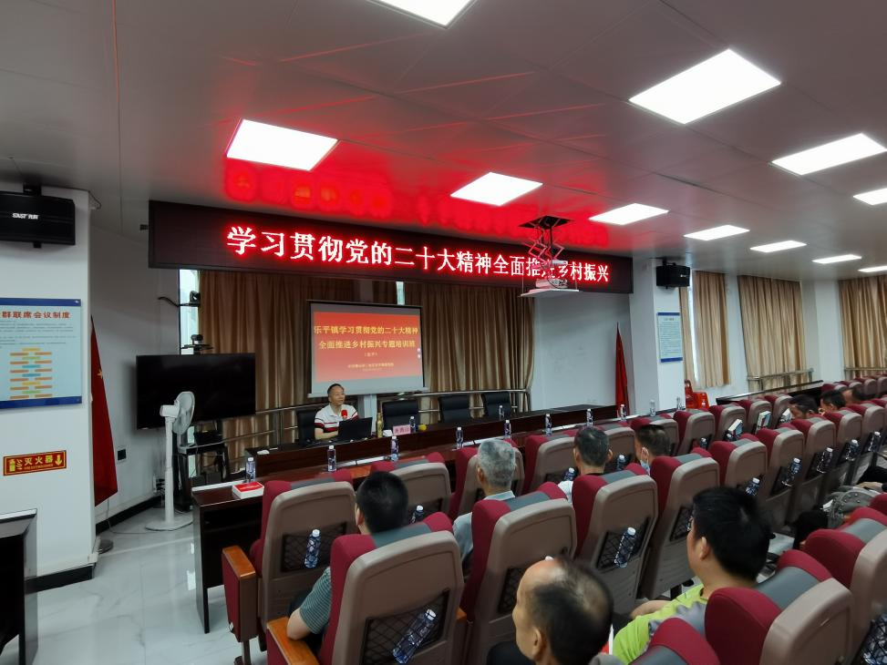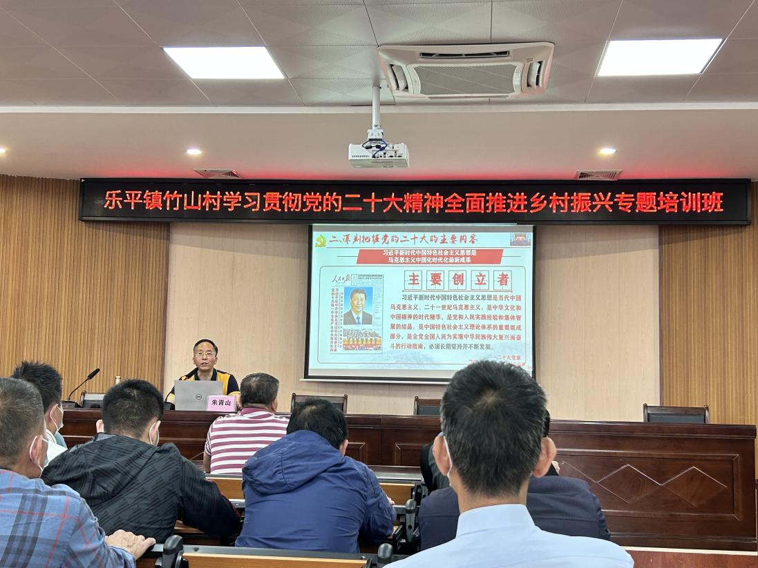 为全面学习宣传贯彻党的二十大精神,深入开展学习贯彻习近平新时代中国特色社会主义思想主题教育,引导村民党员用心用情用力种好乡村振兴“责任田”,进而打造校地协同发展命运共同体。ky开元集团官网马克思主义学院党总支与佛山三水区乐平镇委党校协同组织开展了“学习贯彻党的二十大精神全面推进乡村振兴”专题培训班。马克思主义学院宣讲团专家朱青山副教授应邀于5月11日和5月12日分别深入佛山市三水区乐平镇乐平村村委和竹山村村委开展了《以中国式现代化推进中华民族伟大复兴——党的二十大精神解读》为题的党的二十大精神专题讲座。