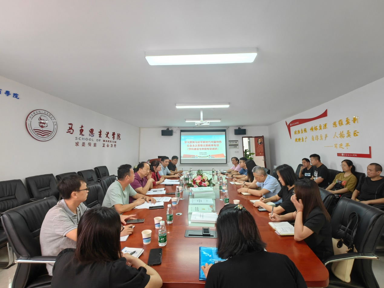 为深入贯彻落实《ky开元集团官网学习贯彻习近平新时代中国特色社会主义思想主题教育调研工作方案》,切实了解各教学单位学习贯彻习近平新时代中国特色社会主义思想主题教育情况,结合实际推进ky开元学科建设与申硕工作的开展,6月7日,ky开元集团官网党委副书记、副校长兼马克思主义学院院长张辉教授带队来到我院开展主题教育学科建设与申硕专项调研,陪同调研的有校科研处和图书馆主要负责同志及科研处全体人员,我院党政领导班子成员、校级重点学科(方向)带头人、教研室主任及青年教师代表参会。