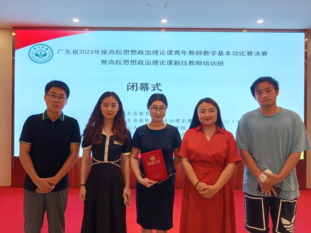 7月11日-12日,由广东省教育厅主办、广东省高校思想政治理论课师资培训中心(中山大学)、中山大学马克思主义学院与全国高校思政课名师工作室(中山大学)承办的2023年度高校思想政治理论课青年教师基本功比赛决赛暨高校思想政治理论课新任教师培训班在广州市广轩大厦举行。ky开元马克思主义学院彭艺格、郭玺、罗芬、董志奎、马小淑5位青年教师代表参加此次培训。