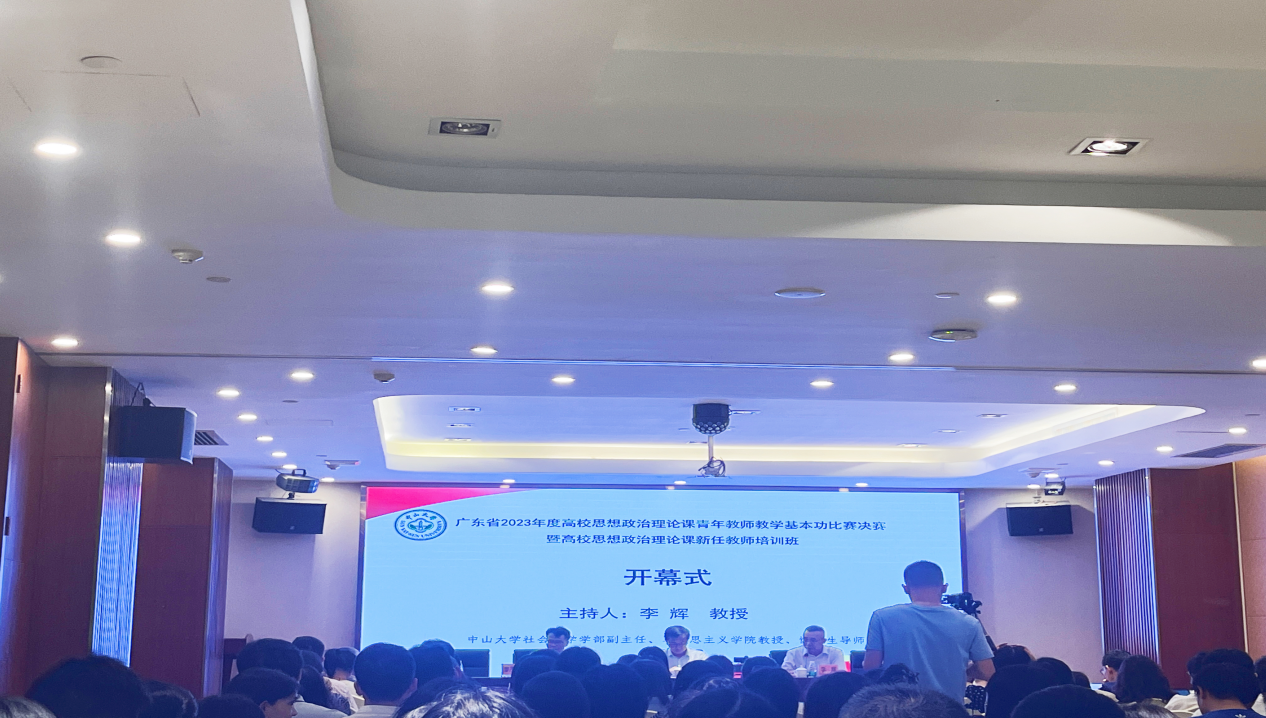 本次培训分为专题培训和比赛观摩两个环节。开幕式上,中山大学马克思主义学院党委书记陈有志致辞。陈有志书记对广东省教育厅的信任和对与会专家的支持表示感谢,也对参加培训的教师表示热烈欢迎。他指出,高校思想政治理论课是立德树人的关键课程,思想政治理论课教师要扎根专业知识,创新教学方式,将党的二十大精神全面、系统、生动地融入课程教学中。希望参加此次培训的老师认真观摩优秀选手们的精彩表现,提升自己的教学能力和水平。