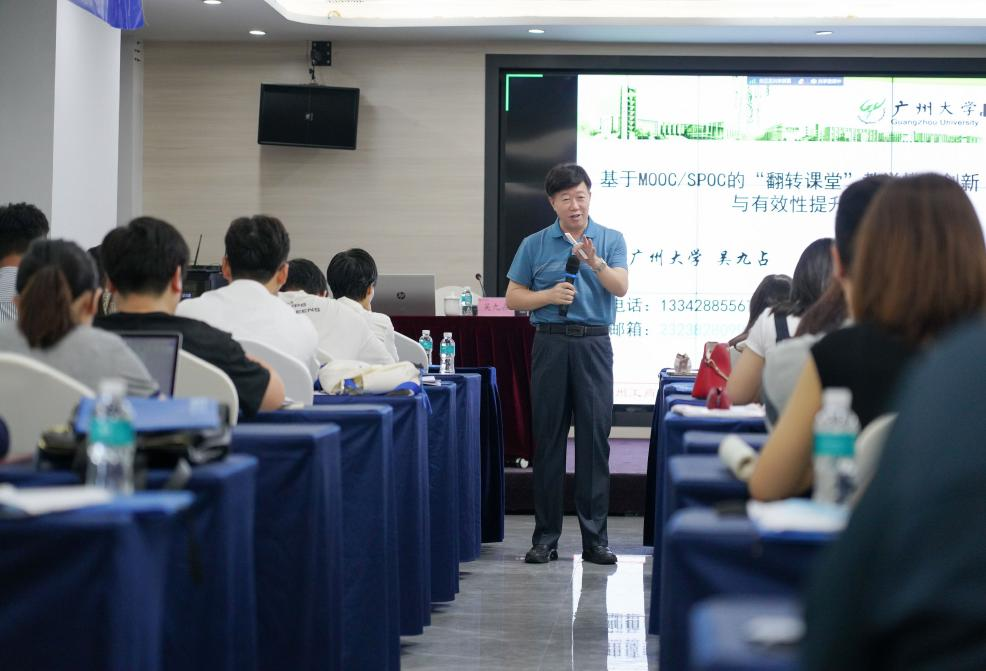 11月5日,由广州大学吴九占教授作题为《基于MOOC/SPOC的“翻转课堂”教学模式创新与有效性提升》的专题讲座,他以“智能技术驱动高等教育变革”为切入点,从翻转课堂的基础:混合式一流课程建设,翻转课堂的保障:线上教学,翻转课堂教学模式及有效性三个方面内容为重点,介绍了网络技术与智慧教学在思政课中的有效实施情况。他指出,面对现代化技术对高等教育产生的重大影响,广大教师需不断提升教学能力以应对这一挑战,并结合自身经验鼓励青年教师积极参与混合式教学改革实践。