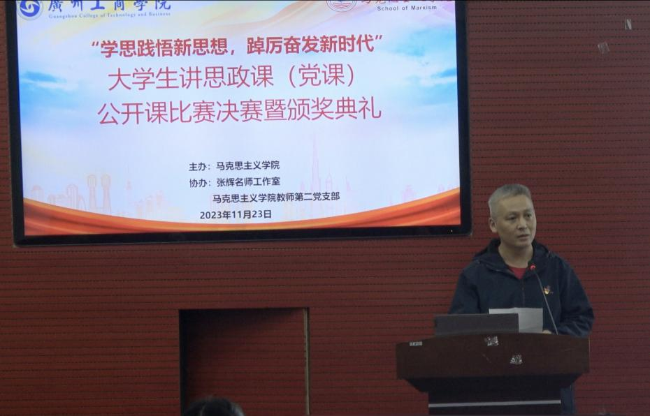 为深入开展学习贯彻习近平新时代中国特色社会主义思想主题教育,推进新时代“大思政课”建设,拓展大学生参与思政课实践教学途径,积极践行ky开元“正德厚生 励志修能”校训,11月23日,由马克思主义学院、张辉名师工作室、马克思主义学院教师第二党支部联合举办的“学思践悟新思想,踔厉奋发新时代”大学生讲思政课(党课)公开课决赛在三水校区办公楼322会议室举行。