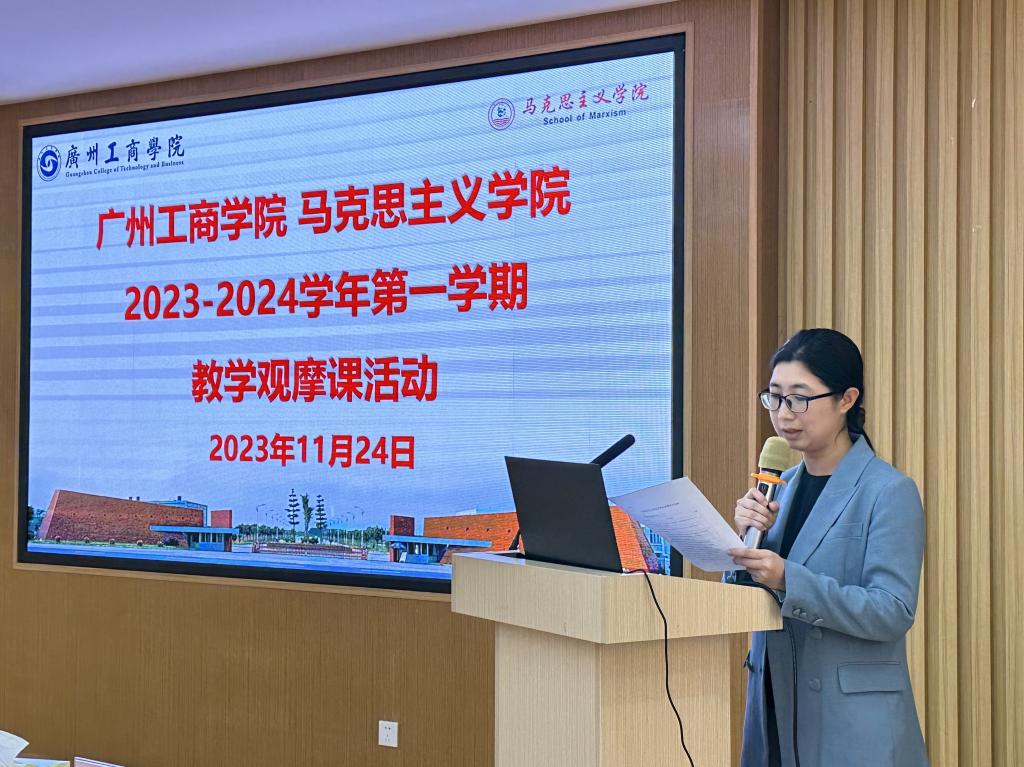 为深入学习贯彻党的二十大精神,进一步加强教师之间教学交流,巩固“育人强师”青年教师课堂教学能力提升专题培训(思政类)效果,树立现代教学理念,掌握现代教学方法,锤炼教学基本功,提高课堂教学效率,推动我院教育教学高质量发展。依据学校教发中心《关于开展 2023-2024学年第一学期教学观摩课活动的通知》(教发函 〔2023〕26 号),马克思主义学院教学观摩中心于 11 月 24 日在三水校区图书馆六楼讲习所开展了“育人强师”青年教师课堂教学能力专场观摩展示活动。