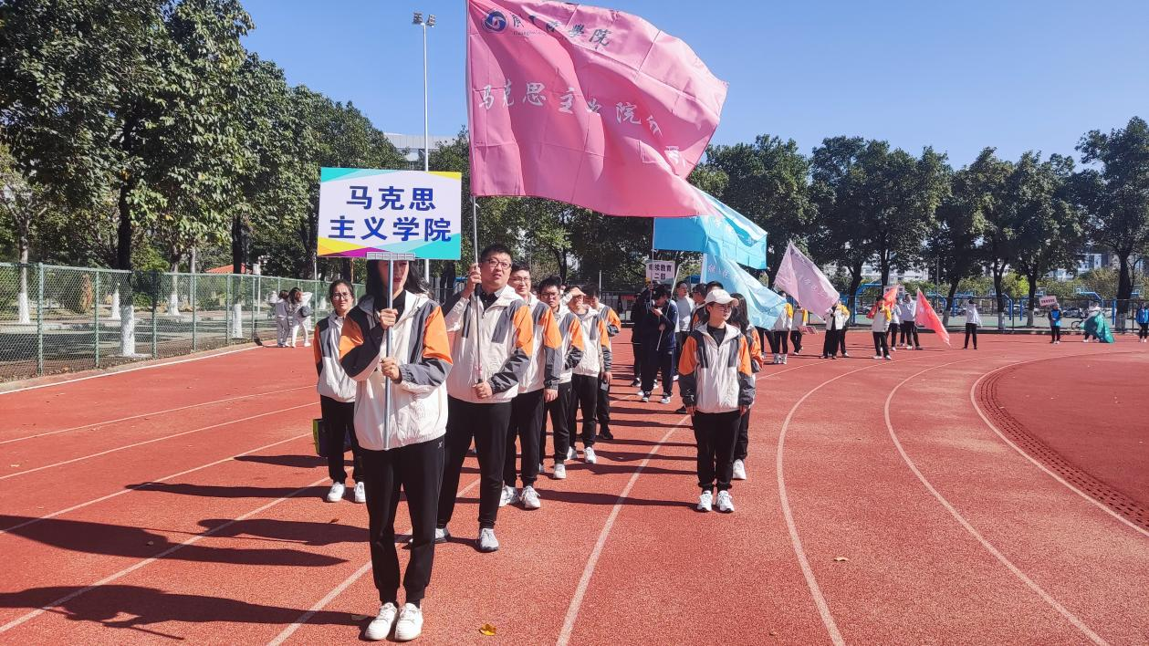 在运动会入场式上,马院教师们着装统一,步伐坚定有力,精神饱满地高呼“思政引领,铸魂育人”的口号,展现了能动能静、亦文亦武的教师风采,以及马院“求是、传道、正心、力行”的院训精神。在体操比赛中,马院体操健将身手矫健,斗志昂扬,团队配合默契,展现了马院教师们团结协作、奋发进取的精神风貌。