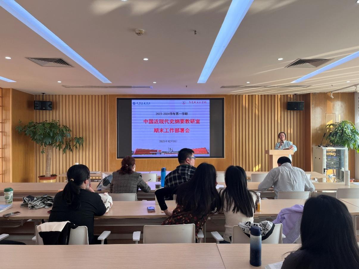 为全面贯彻落实学校及学院期末工作的各项要求,确保本学期期末考试的顺利进行,根据学校有关期末考试相关文件精神,马克思主义学院中国近现代史纲要教研室于12月8日下午在三水校区图书馆6楼讲习所召开期末工作部署会,本次期末工作部署会由陈梦杰老师主持,承担中国近现代史纲要课程的全体教师参加。