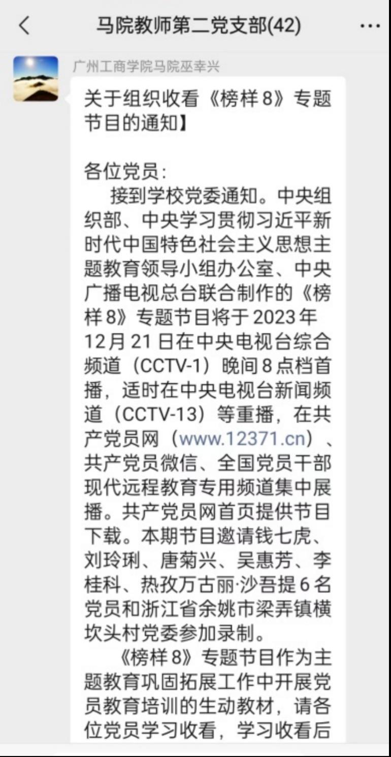 支部在群里通知党员学习收看