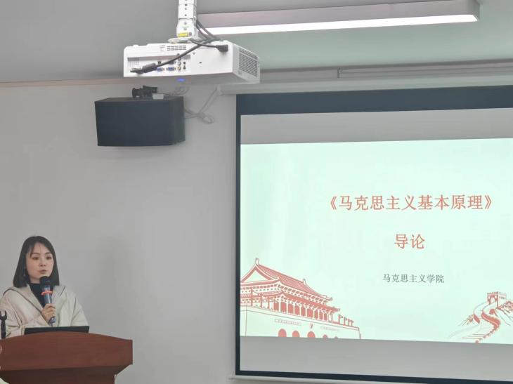 第一项议程,杨朝晖主任介绍课程的基本情况;杨朝晖主任介绍了马克思主义学院新老教师传帮带的特色传统,分配了各自的一对一指导教师,同时欢迎了新入职的教师。接着,杨主任介绍了《马克思主义基本原理》(以下简称《原理》)这一门课程的定位与特点,指出《原理》课是普通高等院校学生必修的一门马克思主义政治理论课,是高校思想政治理论课程体系的核心课程。课程教学务必要切实保证思想性,教学方法要因材施教,稳中带活,切忌“一言堂”、“满堂灌”。同时,杨主任还介绍了本课程教学的基本情况、安排分配了教学准备工作。