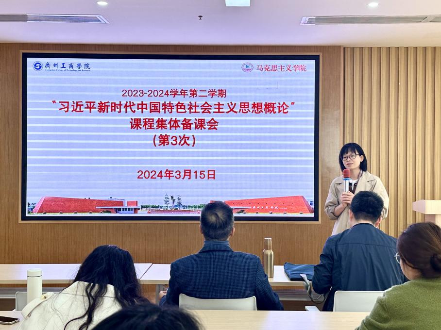 2024年3月15日,习近平新时代中国特色社会主义思想概论教研室在三水校区图书馆六楼新时代党员讲习所召开了本学期第三次集体备课会。会议由习近平新时代中国特色社会主义思想概论教研室主任方圆妹副教授主持,马克思主义学院副院长黄飞副教授、全体习近平新时代中国特色社会主义思想概论授课教师参加会议。