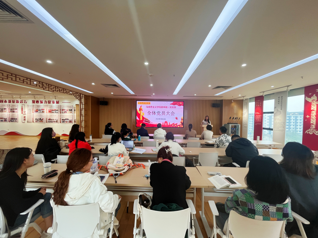 为学习贯彻习近平新时代中国特色社会主义思想,扎实推进支部党建工作,团结凝聚党员同志,推动学院工作高质量发展,2024年3月22日下午,马克思主义学院教师第一党支部在三水校区图书馆新时代党员讲习所召开党员大会暨专题党课活动。教师第一党支部全体党员教师参会,会议由支部书记王云丽副教授主持。本次会议共有两项议程:一是进行支部组织委员的补选;二是学习两会精神。