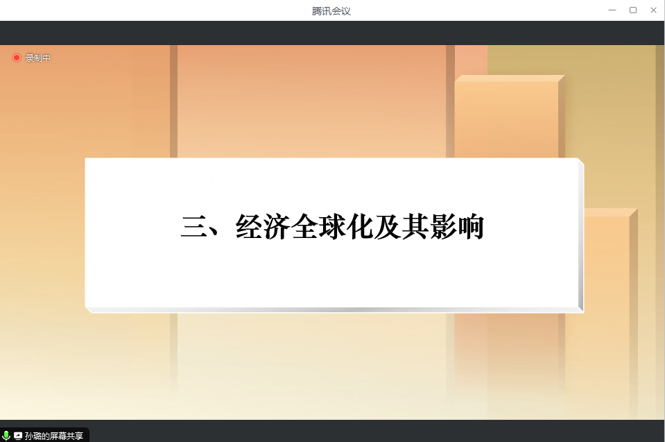 孙璐副教授对第五章第一节第三目《经济全球化及其影响》进行教学展示。孙博士运用丰富的案例,将经济全球化的含义、经济全球化的表现、经济全球化的动因和经济全球化的影响生动地娓娓道来,展示了其广博的知识范围及独特的教学风格。