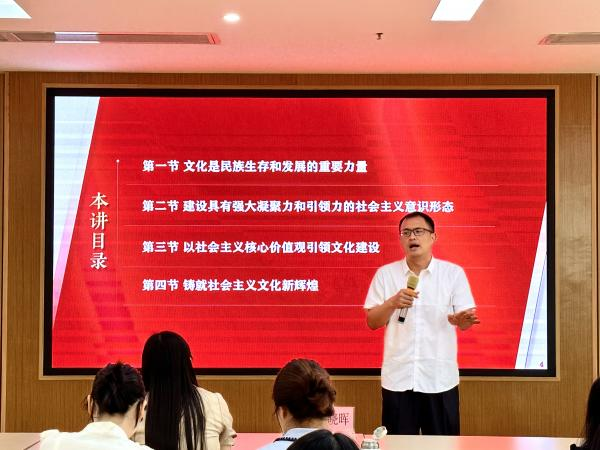 孙晓晖教授结合自己多年的教学经验,就如何上好“习近平新时代中国特色社会主义思想概论”课,并以“第十章 建设社会主义文化强国”为例展开报告。