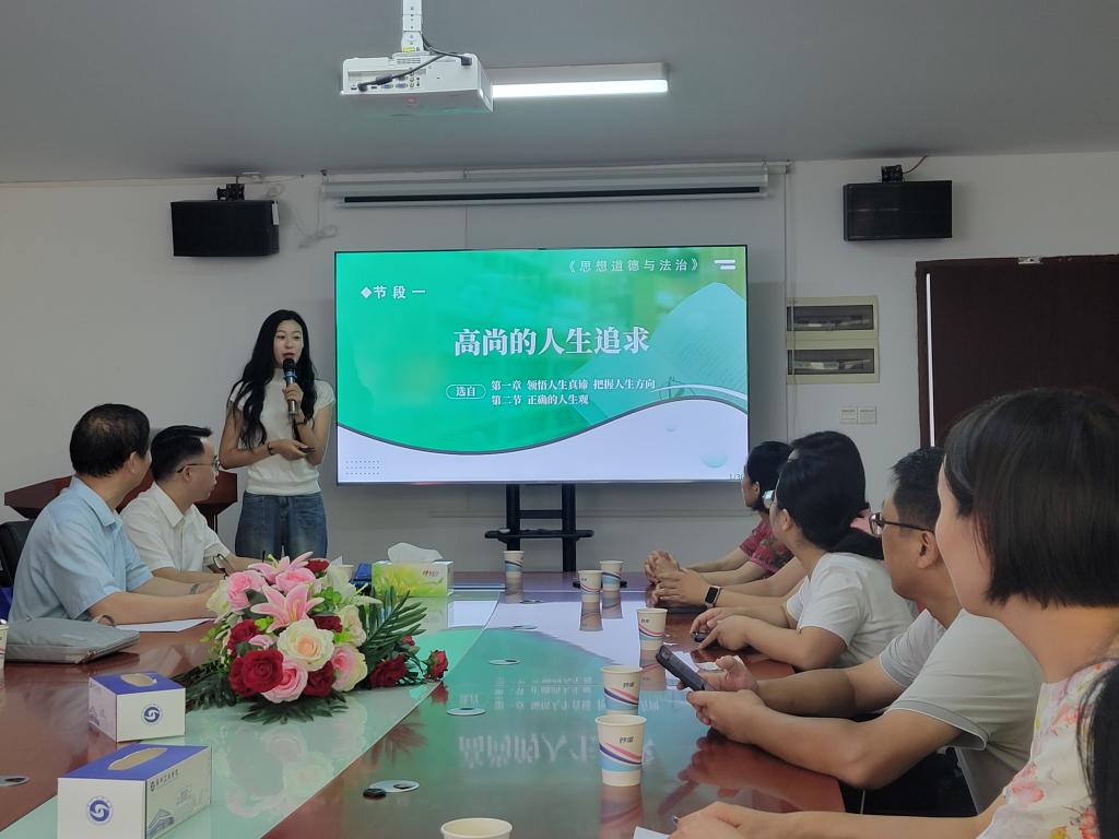 为积极推动新教师关注教学能力提升,提高课堂教学质量,学院组织新进教师观看了正在进行的第七届全国高校青年教师教学竞赛决赛录像,同时,邀请学院青年教师宁佳鑫老师作主题为《高尚的人生追求》教学竞赛示范课展示,宁老师通过课程导入、知识共建、课堂小结、课后拓展四个环节进行教课,课程采用混合式教学,有机融入思政元素,取得良好的教学效果。此外,思想道德与法治教研室彭艺格主任为新进教师实操展示了线上+线下混合式教学实操培训,向大家介绍了学习通的使用方法。通过培训,进一步激励和引导了新进教师认真研讨教学规律和教学方法,加强相互交流和学习。