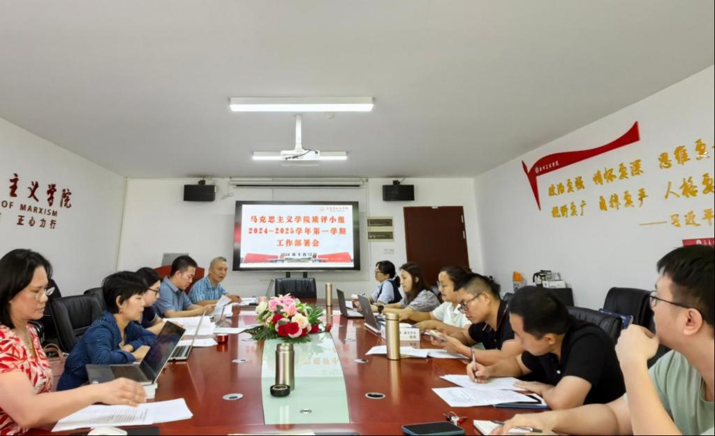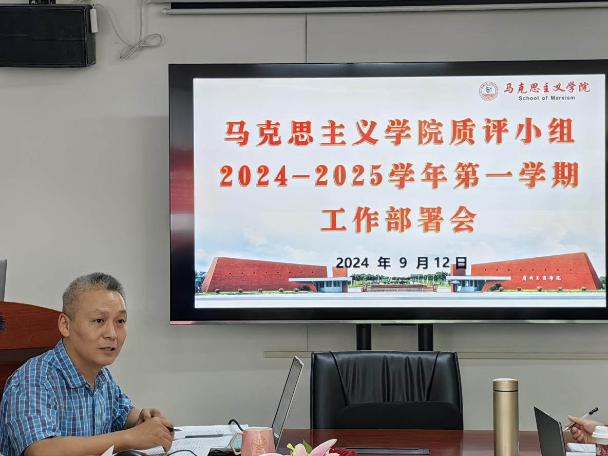 为坚持不懈用习近平新时代中国特色社会主义思想铸魂育人,大力推动党的二十届三中全会精神融入思政课,深入贯彻落实习近平总书记关于思政课建设的重要指示,保证马院教学质量与效果,全面推进学院各项事业的高质量发展。马克思主义学院于9月12日下午,在三水校区院部楼424会议室召开2024-2025学年第一学期质量监控与评估小组工作部署会,会议由马克思主义学院副院长黄飞副教授主持并讲话,质量监控与评估小组的全体教师参加会议。