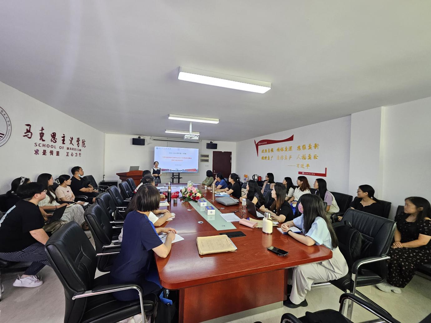 为深入学习党的二十届三中全会精神,通过互学互鉴、教研结合的方式,激发教学内容的活力,创新教学策略,全面提升教学质量。马克思主义学院毛泽东思想和中国特色社会主义理论体系概论教研室于2024年9月5日在三水校区院部楼424会议室举行了首次集体备课会。本次会议由教研室主任熊玉琴副教授主持,本学期担任本门课程的全体教师参加。