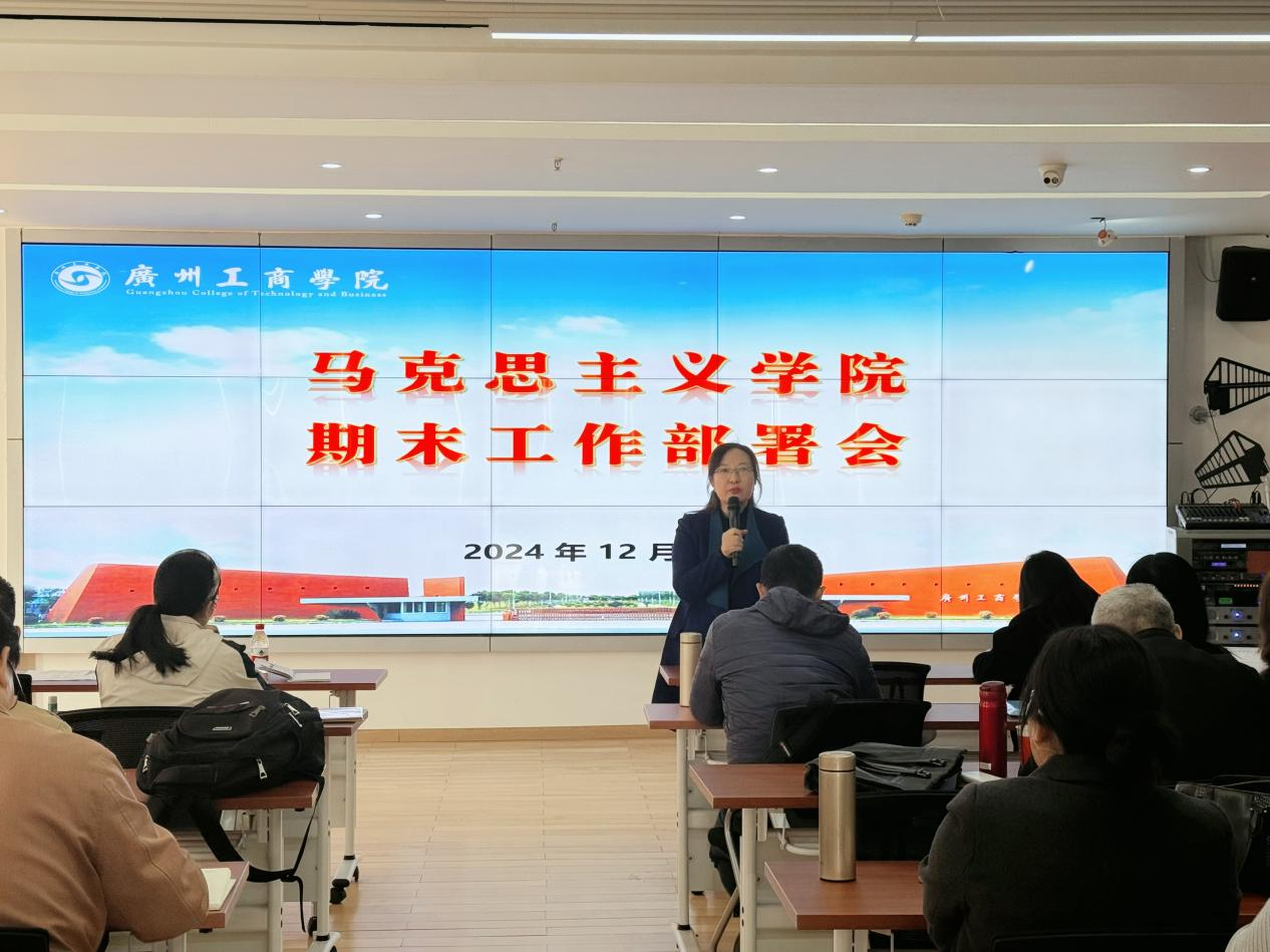 为深入学习贯彻党的二十届三中全会精神,贯彻落实学校有关期末工作的各项要求,顺利完成思政课程期末考试,保质保量完成本学期各项工作任务,全面推进学院各项事业的高质量发展,12月20日下午,马克思主义学院在三水校区院部楼525会议室召开2024-2025学年第一学期期末工作部署会,会议由马克思主义学院副院长黄飞副教授主持并讲话,马克思主义学院全体教师参加会议。