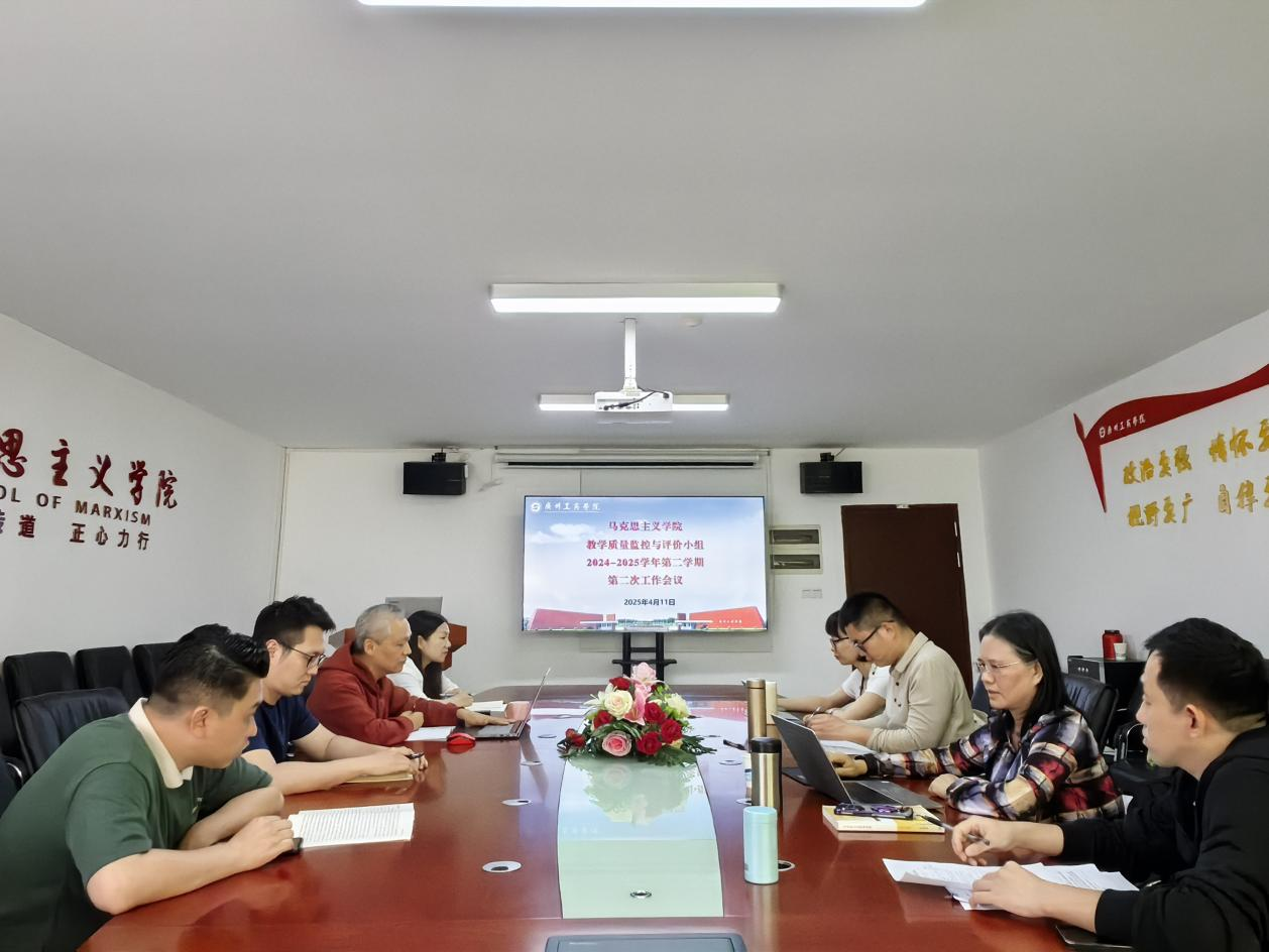 为全面深入学习贯彻党的二十届三中全会精神,落实新时代高校思政课建设要求,切实提升思政课教学质量,助推教师教学成长,4月11日下午,马克思主义学院在三水校区院部楼424会议室召开2024-2025学年第二学期教学质量监控与评价小组第二次工作会议,马克思主义学院党总支书记、常务副院长周静副教授出席会议并讲话,会议由马克思主义学院副院长黄飞副教授主持,教学质量监控与评价小组的教师代表参加会议。