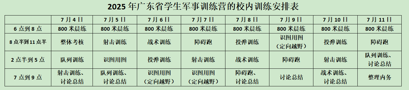 指导老师制定了详细的训练安排