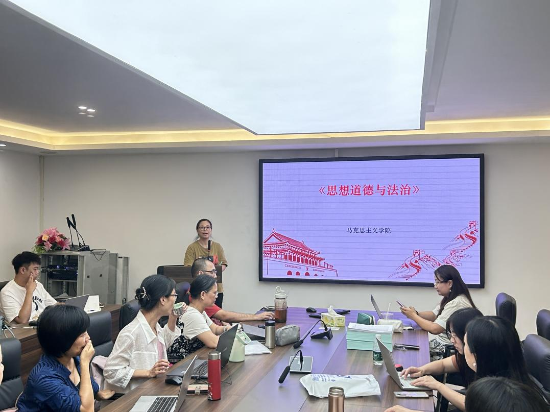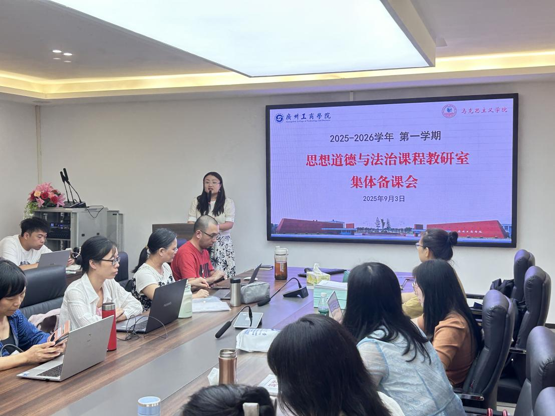 为系统谋划新学期教学工作,全面提升教师的专业素养与育人能力,切实增强课程的思想性、理论性和感染力,9月3日下午,马克思主义学院思想道德与法治教研室在三水校区图书馆402室召开2025-2026学年第一学期《思想道德与法治》集体备课会。备课会由教研室主任彭艺格主持,全体授课教师参会。