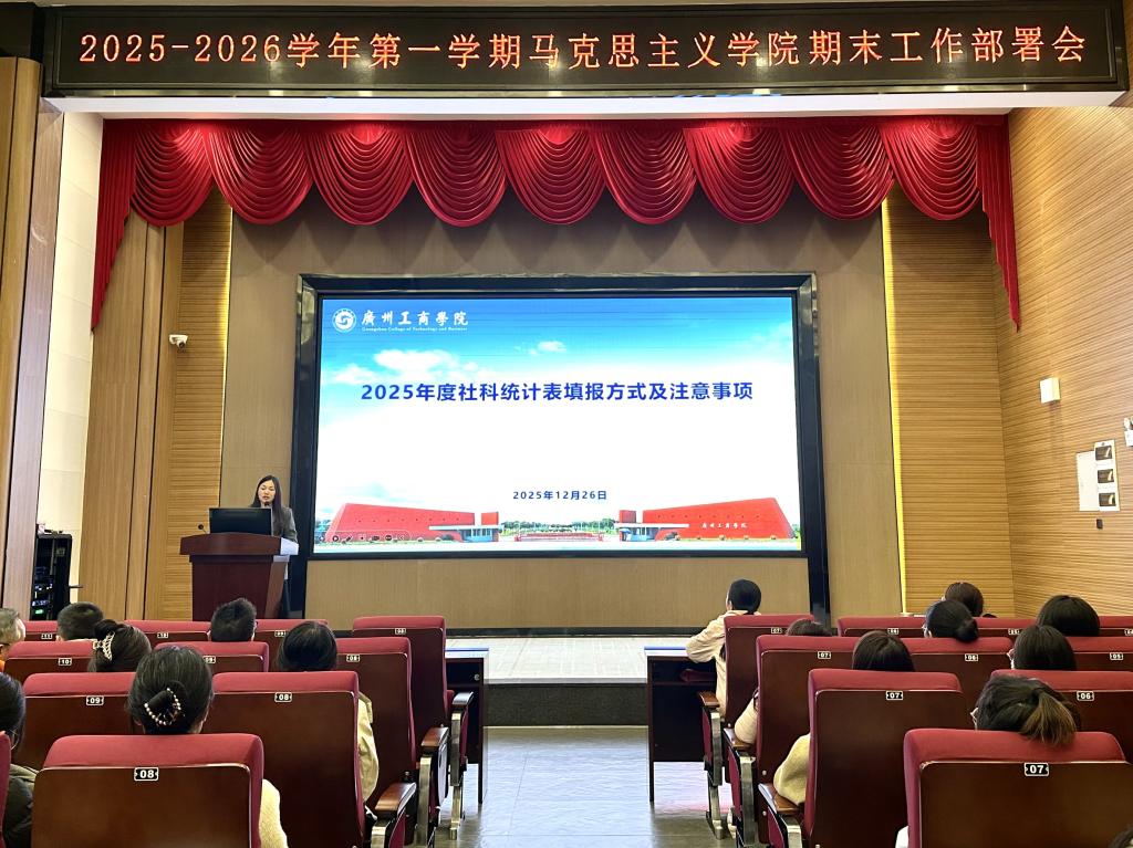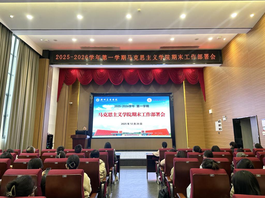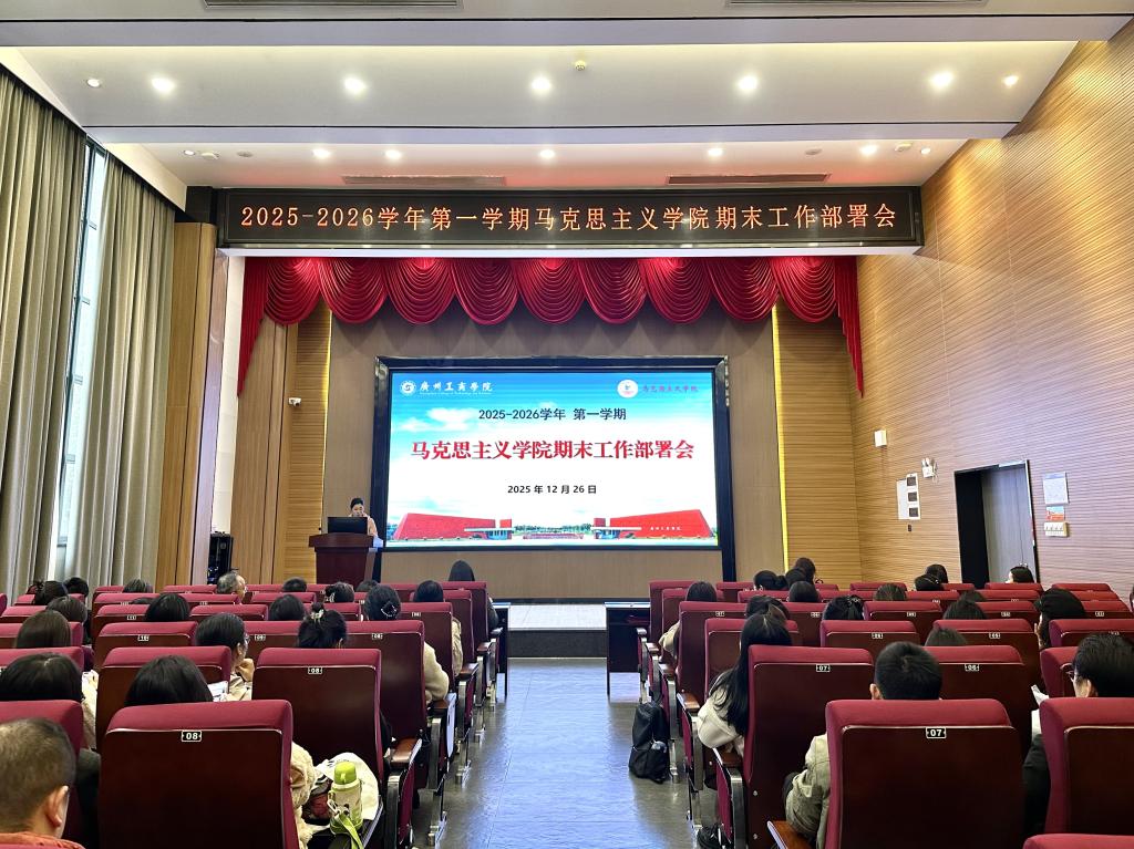为纵深推进高等教育高质量发展,全面深化马克思主义理论学科建设与思政课改革创新,落实“德学·五进”教育理念,高效推进本学期期末各项工作,确保教学与科研任务高质量完成,12月27日下午,马克思主义学院在花都校区图书馆416报告厅召开了期末工作部署会议。本次会议由马克思主义学院副院长谭丽婷副教授主持,马克思主义学院全体教师参加会议。