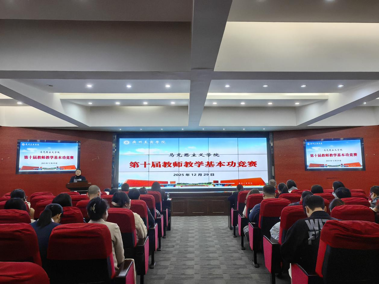 为大力推进党的二十届四中全会精神融入思政课,深入贯彻落实习近平总书记关于思政课建设的重要指示,贯彻新时代学校思政课建设推进会精神,夯实教师教学基本功,提高专业素养,提升教学质量,马克思主义学院于2025年12月29日上午,在三水校区办公楼322会议室举办了第十届青年教师基本功比赛。本次比赛由马克思主义学院《思想道德与法治》教研室主任彭艺格老师主持,马克思主义学院教学指导委员会成员担任评委,马院青年教师现场观摩比赛。