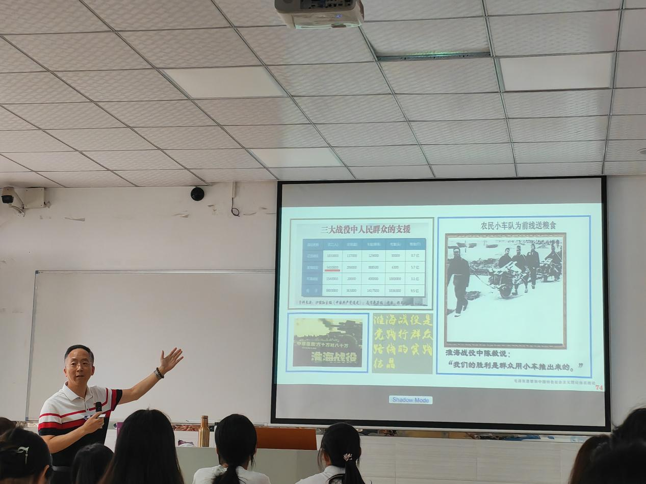 朱副教授以“毛泽东思想活的灵魂和历史地位”为主题,给师生们带来了一堂热情洋溢、灵动活泼的思政课。整堂课以回顾衔接、总体概述、理论阐述、重难点剖析、总结升华的脉络开展教学,层层推进,逐步深入。朱副教授首先以提问的方式带领同学们简要地回顾了上节课的主要内容,强调实事求是就是一切从实际出发,理论联系实际,在实践中检验真理和发展真理,群众路线就是一切为了群众,一切依靠群众,从群众中来到群众中去,将党的正确主张转变为群众的自觉行动。其次,朱副教授阐述了本节课继续学习本章的重点内容——毛泽东思想活的灵魂之群众路线和独立自主。最后,朱副教授剖析了难点问题,指出在正确理解毛泽东思想的历史地位的基础上,学会科学认识和评价毛泽东和毛泽东思想,树立正确的历史观。不仅讲授了如何正确认识和评价毛泽东和毛泽东思想,还高屋建瓴地概括总结了正确评价历史人物的应有的原则和态度,让学生们豁然开朗。在授课过程中,朱副教授采用理论与实践相结合、知识与学生相结合、内容与热点相结合、提问与讨论相结合的方式,将枯燥的理论转化成一个个深入浅出的活道理,引人深思。