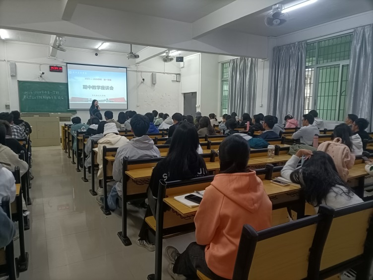 为深入开展学习贯彻习近平新时代中国特色社会主义思想主题教育走深走实,落实习近平总书记关于高校思政课重要论述,了解本学期马院思政课程开展情况,充分发挥思政课立德树人的育人功能,11月16日下午,马克思主义学院在三水校区一教D204召开了2023-2024学年度第一学期期中教学座谈会。马克思主义学院形势与政策教研室主任刘于亮老师、青年教师代表周小红老师和60多名学生代表参加了座谈会。