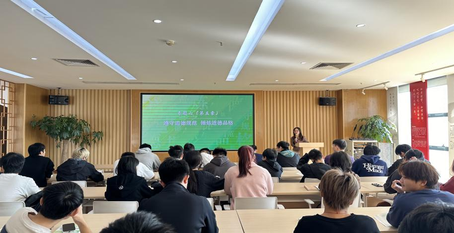 叶桐润老师以“遵守道德规范,锤炼道德品格”为主题,并将实践教学带到课堂,给师生们带来了一堂生动而又深刻的思政课。整堂课主要包括总体概述、内容讲解、实践讲演、师生互动、总结升华,理论与实践环环相扣。首先,叶桐润老师带领同学们参观新时代党员讲习所,并向同学们进行了生动的讲解,通过了解讲习所的由来与应用,使同学们切身感受到中共党员的初心和使命,通过对于讲习所的参观,同学们都纷纷表示在这里开展本次课程意义非凡。接着,叶桐润老师通过播放纪录片《典籍中的中国》导入本次授课内容,在授课过程中,叶桐润老师采用理论与实践相结合、内容与热点相结合的方式,将“传承中华传统美德”等理论讲得深入人心。