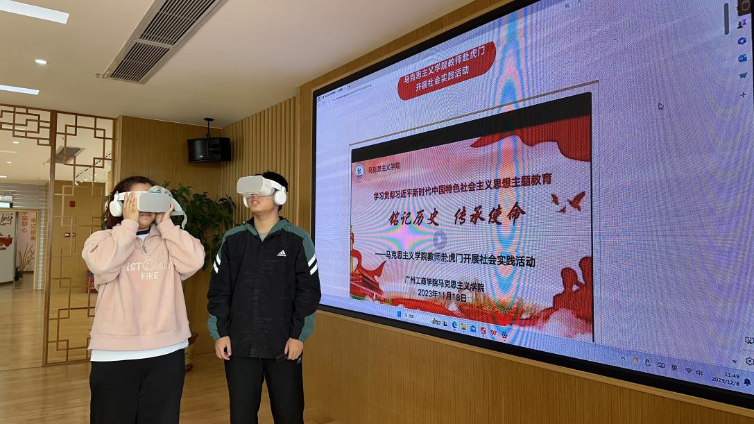 在课间休息时,同学们也非常积极的学习讲习所宣传墙上的知识,并且能够利用讲习所的先进设备丰富课余生活,参加知识竞赛,充分体现了寓教于动,寓教于情,寓教于乐,寓教于心,重在践行。叶桐润老师讲到“发扬中国革命道德”的时候,将实践教研室组织大学生参加社会实践活动的文章和视频播放给同学们观看,通过参观林则徐纪念馆、威远炮台、海战博物馆的视频资源,同学们更加感受到了实践的重要性,并且表示在之后的学习和生活中也要加强自身社会实践的本领,在这一教学环节中,叶桐润老师还通过讲习所的VR设备,带给同学们亲临现场般的体验,将现代科技融入实践教学,展现了极佳的教学效果。