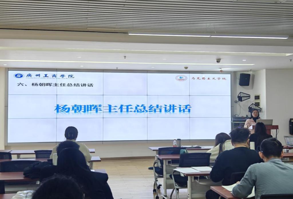 最后,杨朝晖主任进行了会议总结,她提出备课至少要完成“五备”,即备教材、备学生、备教法、备教具、备学法指导。同时她强调,《马克思主义基本原理》课程作为思政课的核心课程,首要任务是立德树人,因此要把思政课讲活、讲透就要注重课程的学理性与政治性相统一。