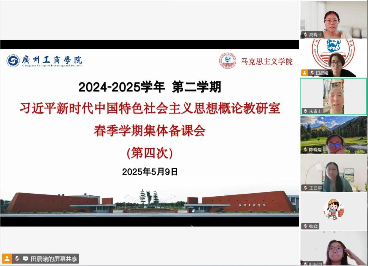 为进一步提高教学质量,促进教师间的交流,2025年5月9日下午,习近平新时代中国特色社会主义思想概论课程教研室在腾讯会议上召开了本学期第四次集体备课会。本次备课会由课程负责人朱青山副教授主持,全体任课教师参加。
