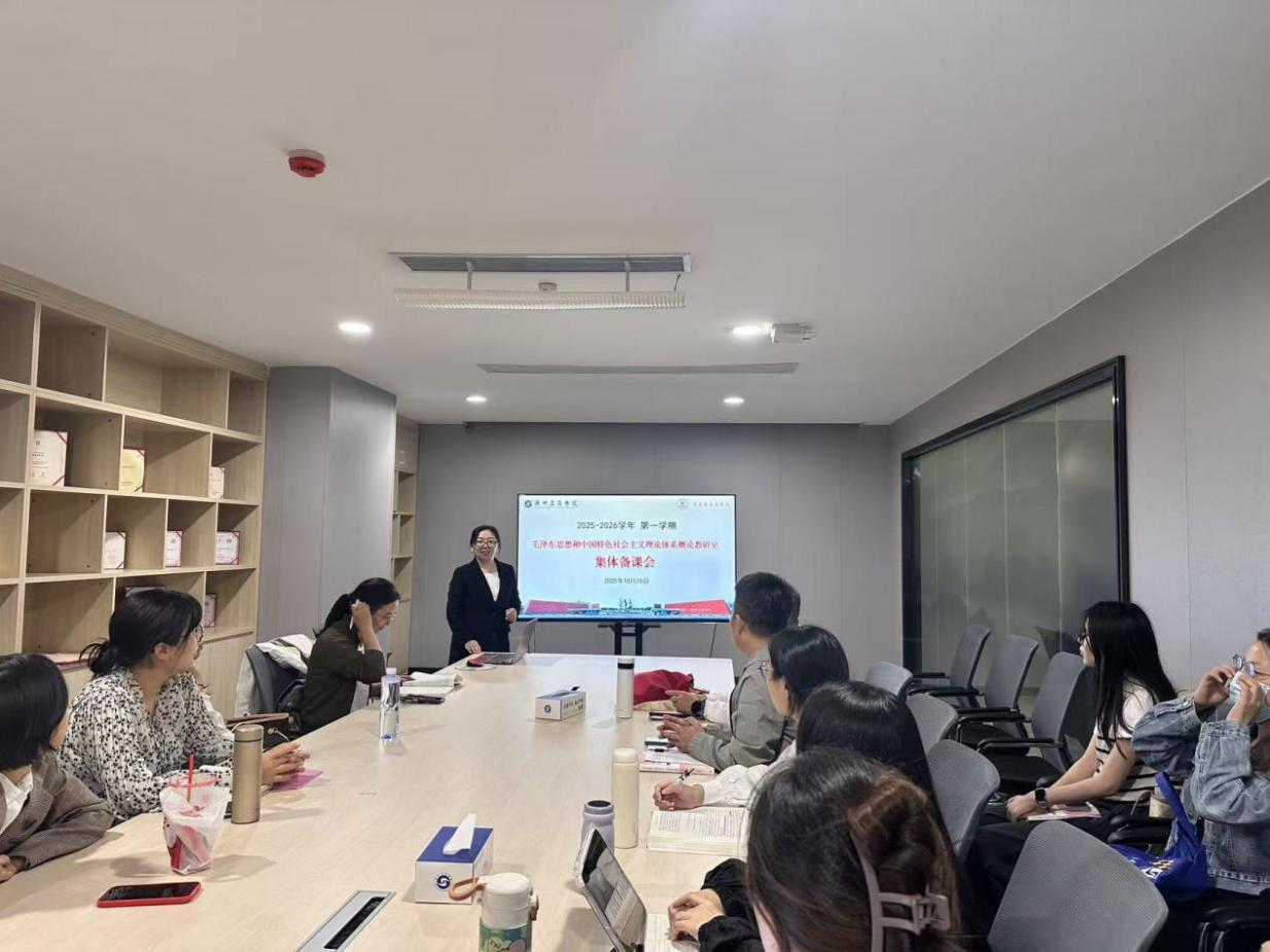 为进一步提升“概论”课程教学质量,深化教学改革,促进教师之间的经验交流与相互学习,推动学校“德学·五进”教育理念落地落实,2025年10月24日下午,毛泽东思想和中国特色社会主义理论体系概论教研室在花都校区图书馆410室成功举办本学期第三次集体备课会。会议由教研室主任熊玉琴副教授主持,全体授课教师参加。