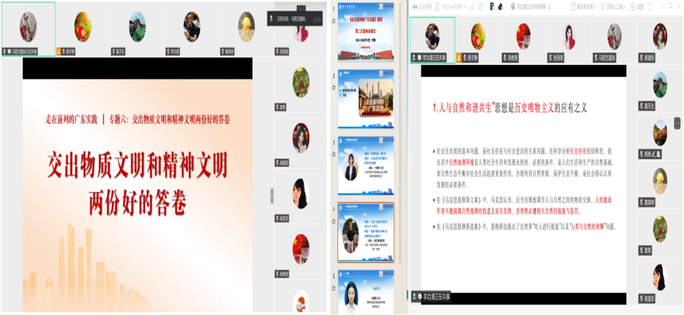 为深入贯彻落实习近平总书记关于学校思政课建设的重要指示精神,持续推进思政课改革创新,高标准推进省委宣传部、省教育厅牵头打造的《走在前列的广东实践》高校思政精品课程建设,3月19日,我院思想政治理论课实践教学课程教研室召开本学期第二次集体备课会。会议由教研室课程助理杨宇静主持,全体任课教师参会。