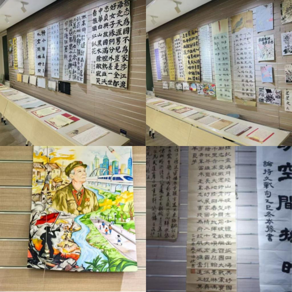 经过精心遴选与布展,优秀参赛作品于12月中旬至次年一月初在三水校区图书馆一楼大厅正式展出。展览现场翰墨飘香,吸引了众多师生驻足观赏,成为了校园里一道亮丽的红色文化风景线。
