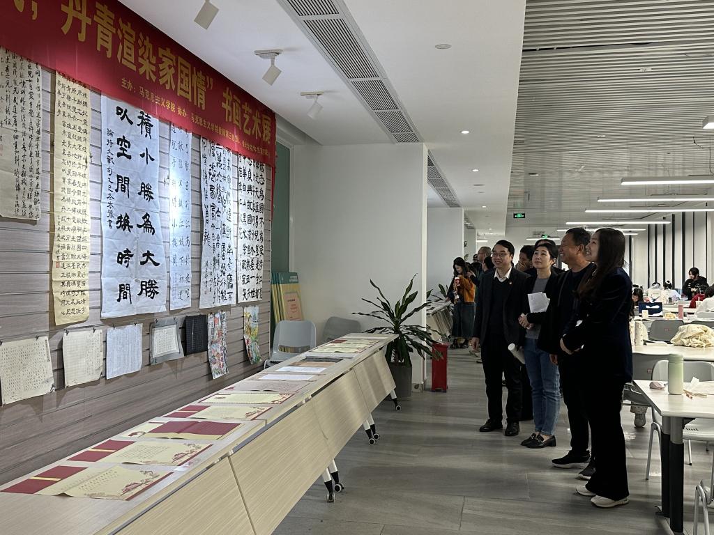 12月29日,马克思主义学院党总支书记、执行院长周静副教授,马克思主义学院党总支副书记、副院长谭丽婷副教授,图书馆副馆长王自东以及马院教师代表一行共同参观了书画展览。