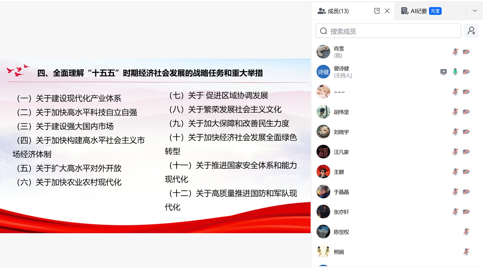 为深入学习领会党的二十届四中全会精神,切实把支部党员思想和行动统一到党中央决策部署上来,扎实推进全会精神融入思政课教学与育人实践,2025年12月3日晚,马克思主义学院教师第四党支部通过腾讯会议线上平台举办了专题党课。党支部书记曾诗健主持授课,支部党员教师参加学习。