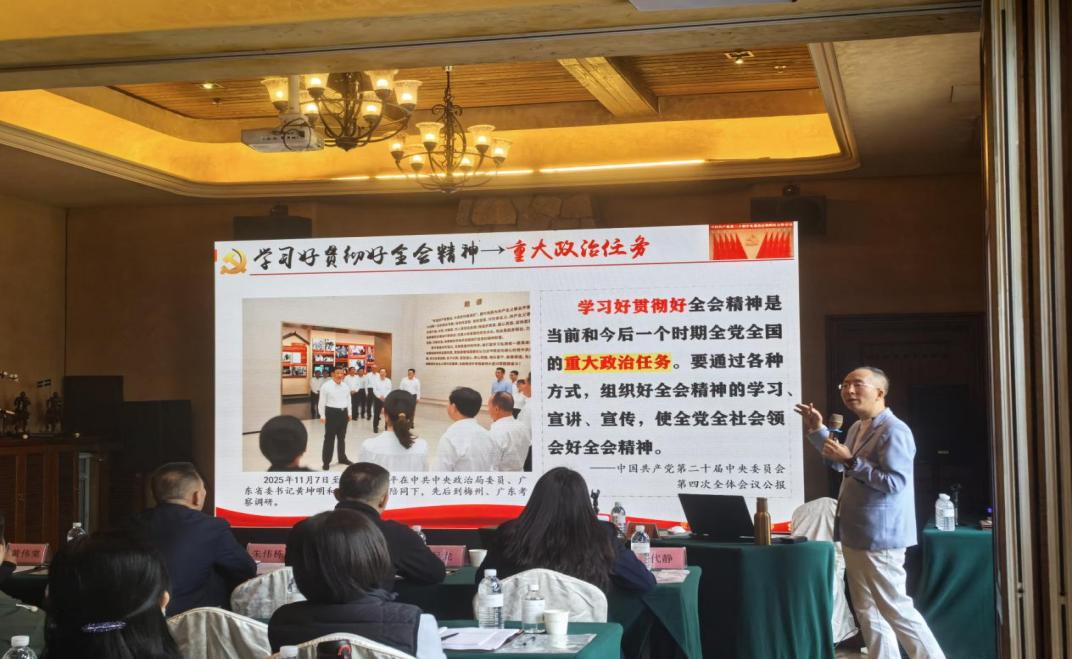 为深入学习宣传贯彻党的二十届四中全会精神,让“十五五”规划蓝图在空港经济一线落地生根,2025年12月4日上午,花都区空港经济管理委员会特邀ky开元集团官网马克思主义学院朱青山副教授作专题宣讲。